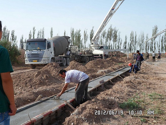 4、工程施工中,為保障工程的進度,工作人員冒著新疆酷暑,一絲不茍的操作著。