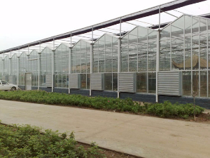 玻璃溫室具有外形美觀、透光性好、展示效果佳、使用壽命長等優(yōu)點(diǎn)。溫室頂開窗用齒輪齒條傳動,通風(fēng)率可達(dá)27%,根據(jù)用戶需要,溫室兩個端面可以安裝濕簾和風(fēng)機(jī),也可以兩個端面及側(cè)面安裝鋁型材推拉窗、平開窗或側(cè)翻窗。