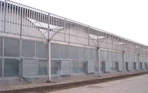 兩側(cè)安裝濕簾風(fēng)機降溫系統(tǒng),可有效降低棚內(nèi)溫度