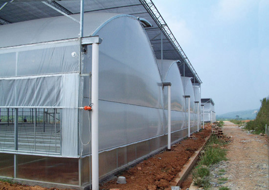 覆蓋材料頂部為無(wú)滴長(zhǎng)壽膜覆蓋,外層防紫外線,內(nèi)層防集露;四周可以根據(jù)用戶需要采用無(wú)滴長(zhǎng)壽膜或陽(yáng)光板或玻璃覆蓋。